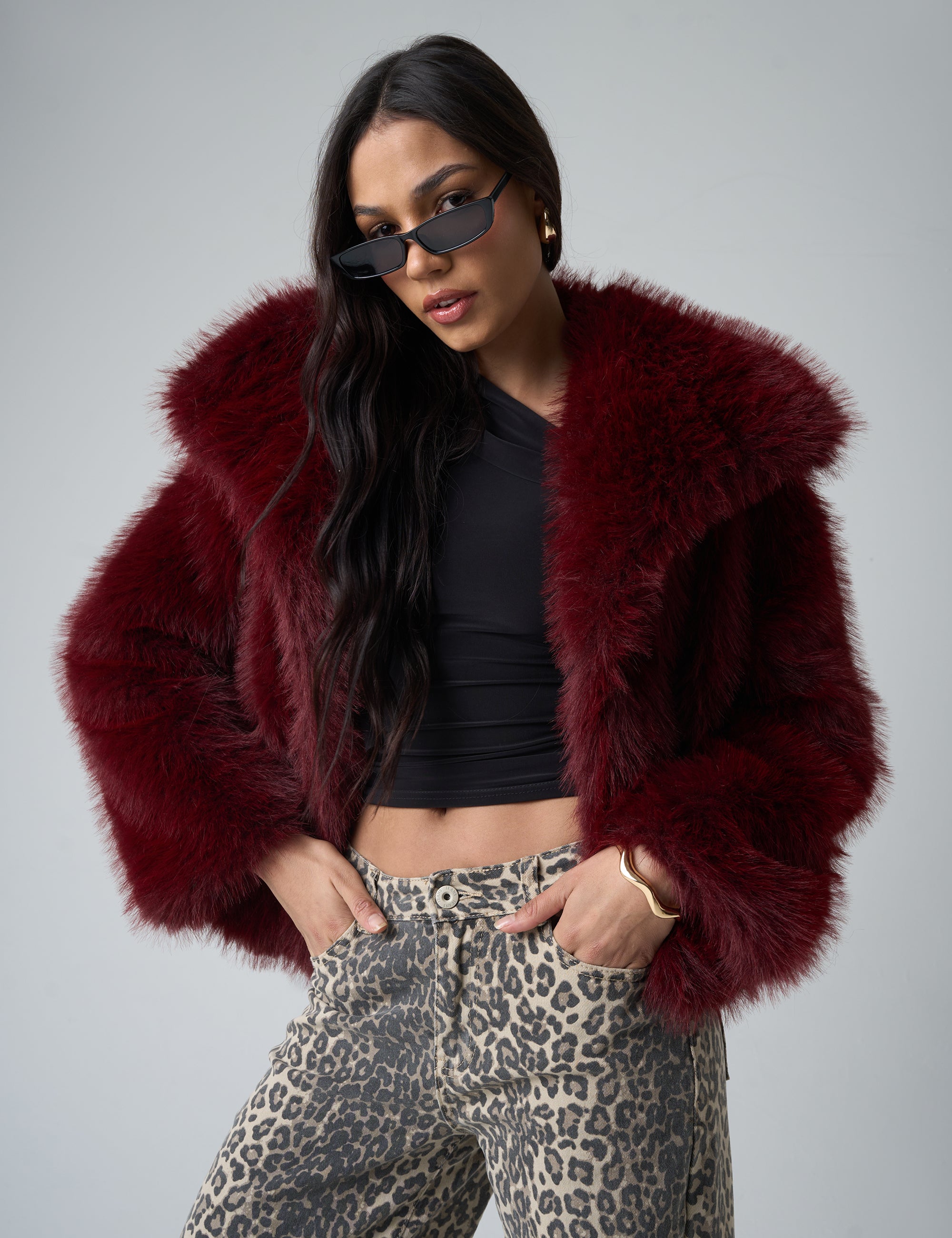 Elevate your A/W style with our Short Faux Fur Jacket in Burgundy! Stay warm and stylish with our rich burgundy colour and luxurious faux fur material. Perfect for both casual and formal occasions, this jacket is a must-have addition to your wardrobe.