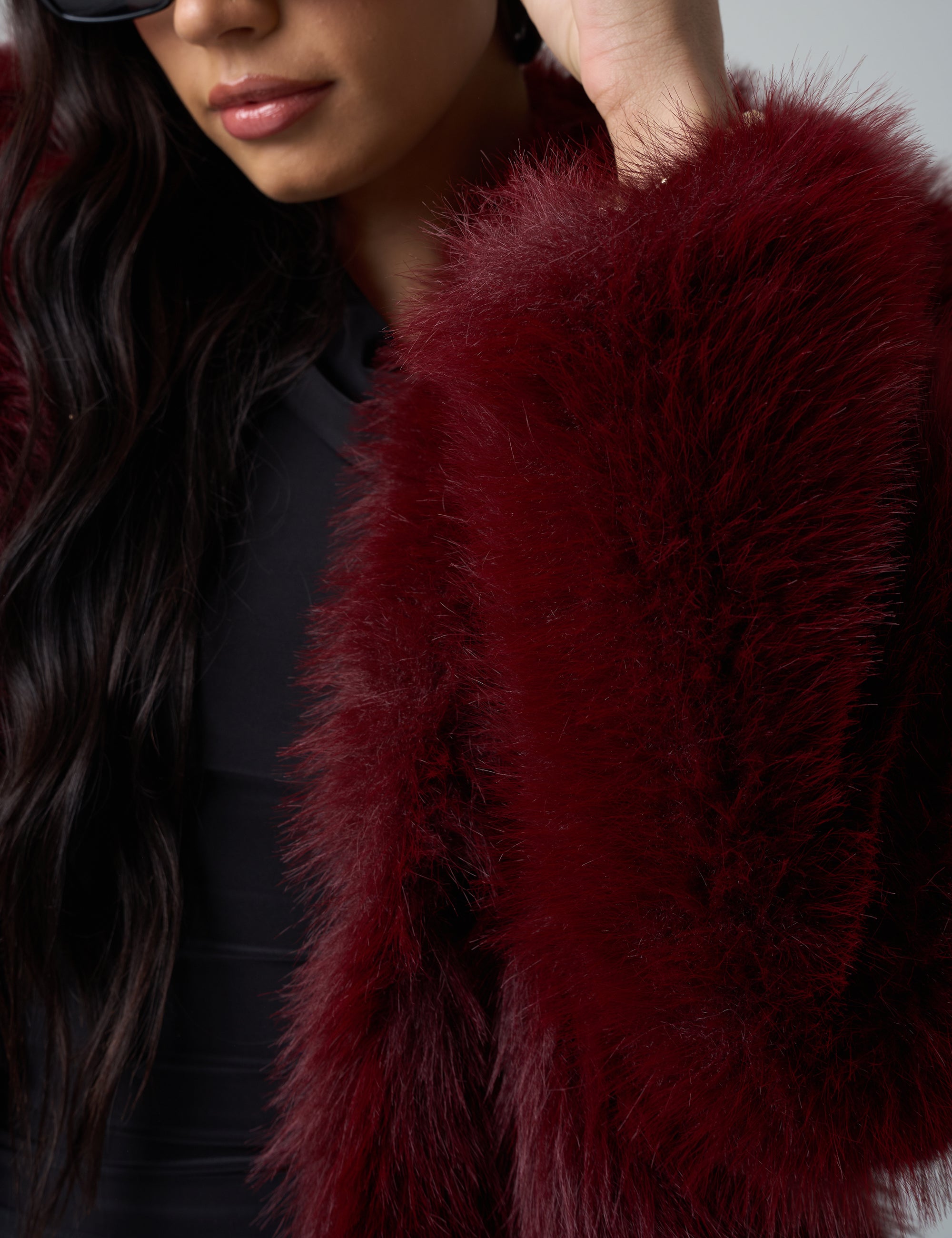 - Short Faux Fur Jacket Burgundy