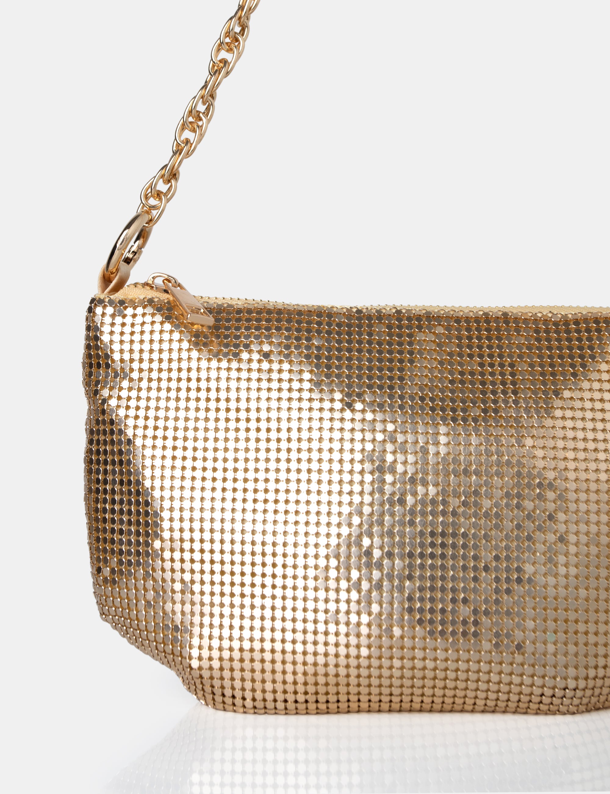 The Slouch Gold Diamante Chainmail Baguette Chain Detail Shoulder Bag