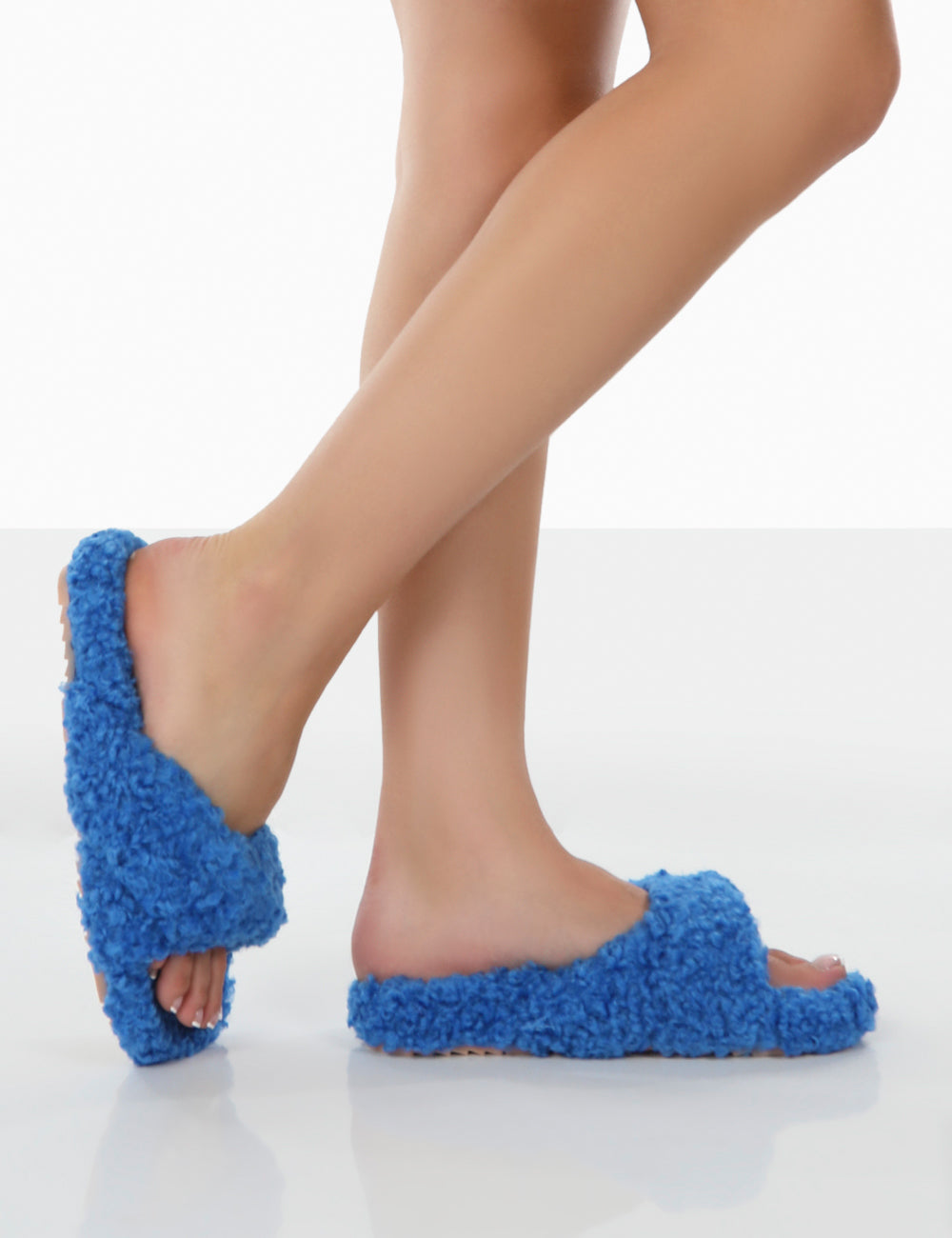 - Slumber Blue Teddy Cross Over Strap Slippers