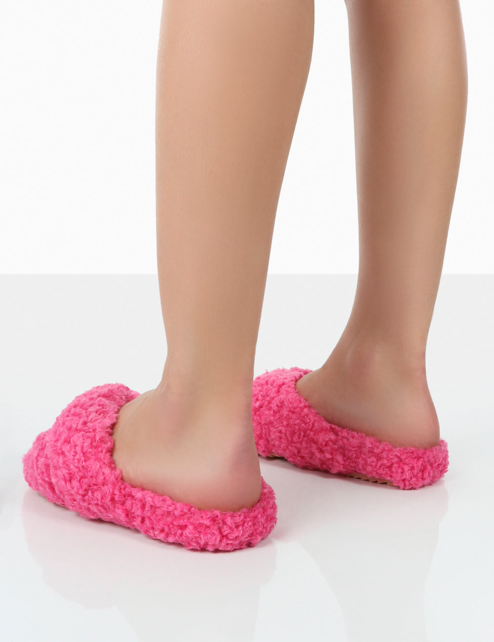 - Slumber Pink Teddy Cross Over Strap Slippers
