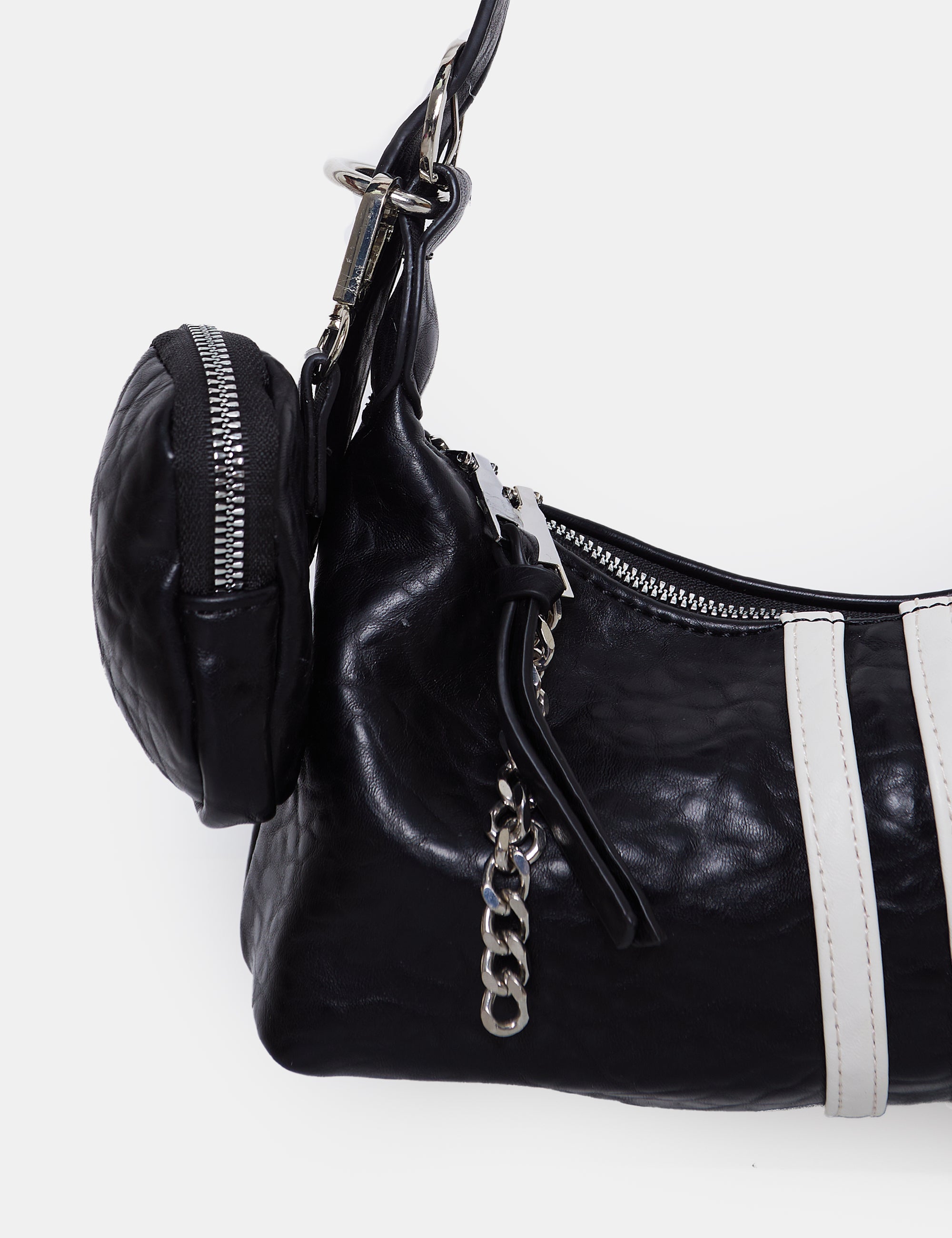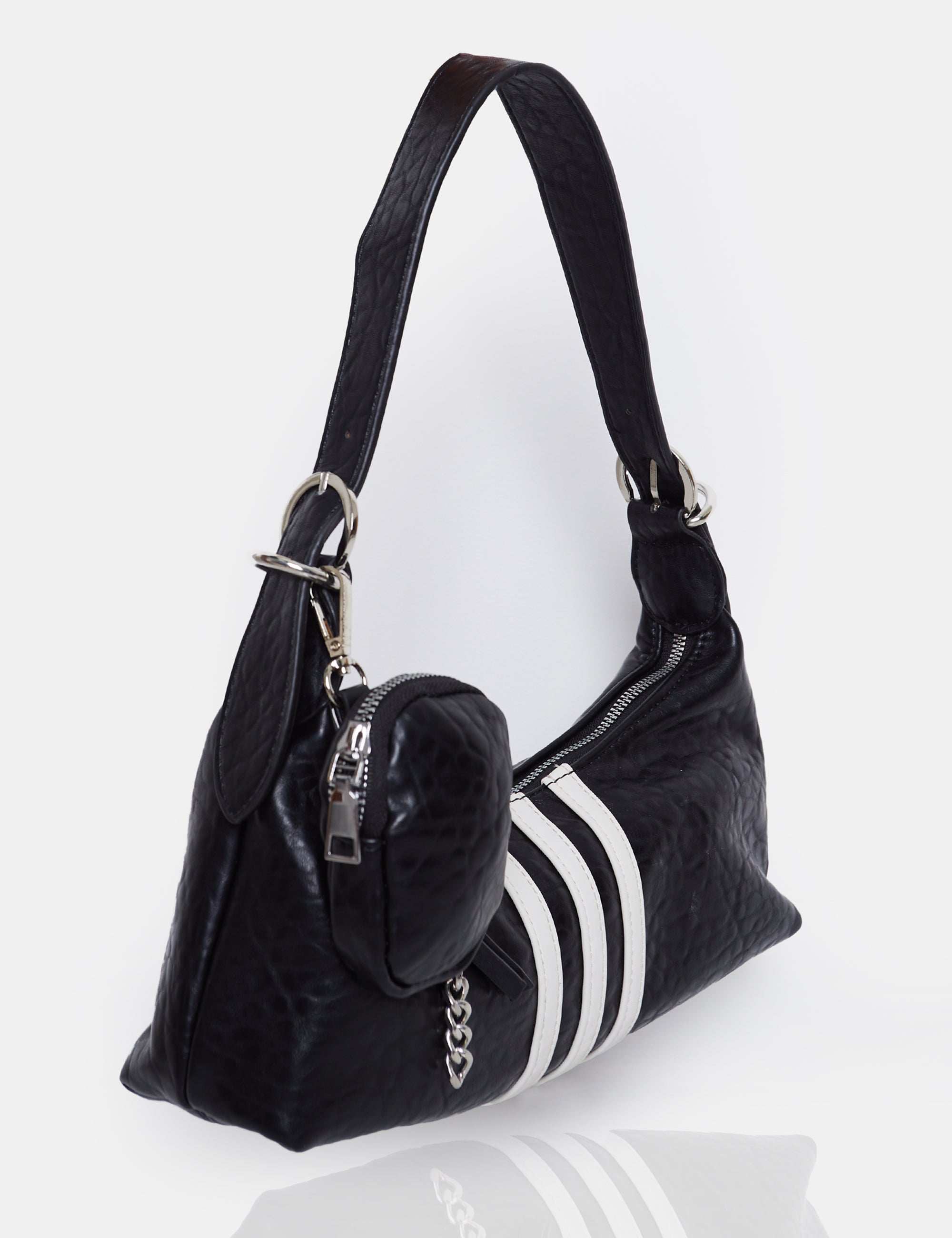 Elevate your outfit with the bold, quirky style of the Supernova Black Striped Baguette Shoulder Bag. Featuring a unique striped design, this baguette shoulder bag is perfect for those who like to stand out from the crowd. With its spacious interior and durable construction, it's the perfect blend of fashion and function. (Embrace your individuality with the striking Supernova Baguette!)