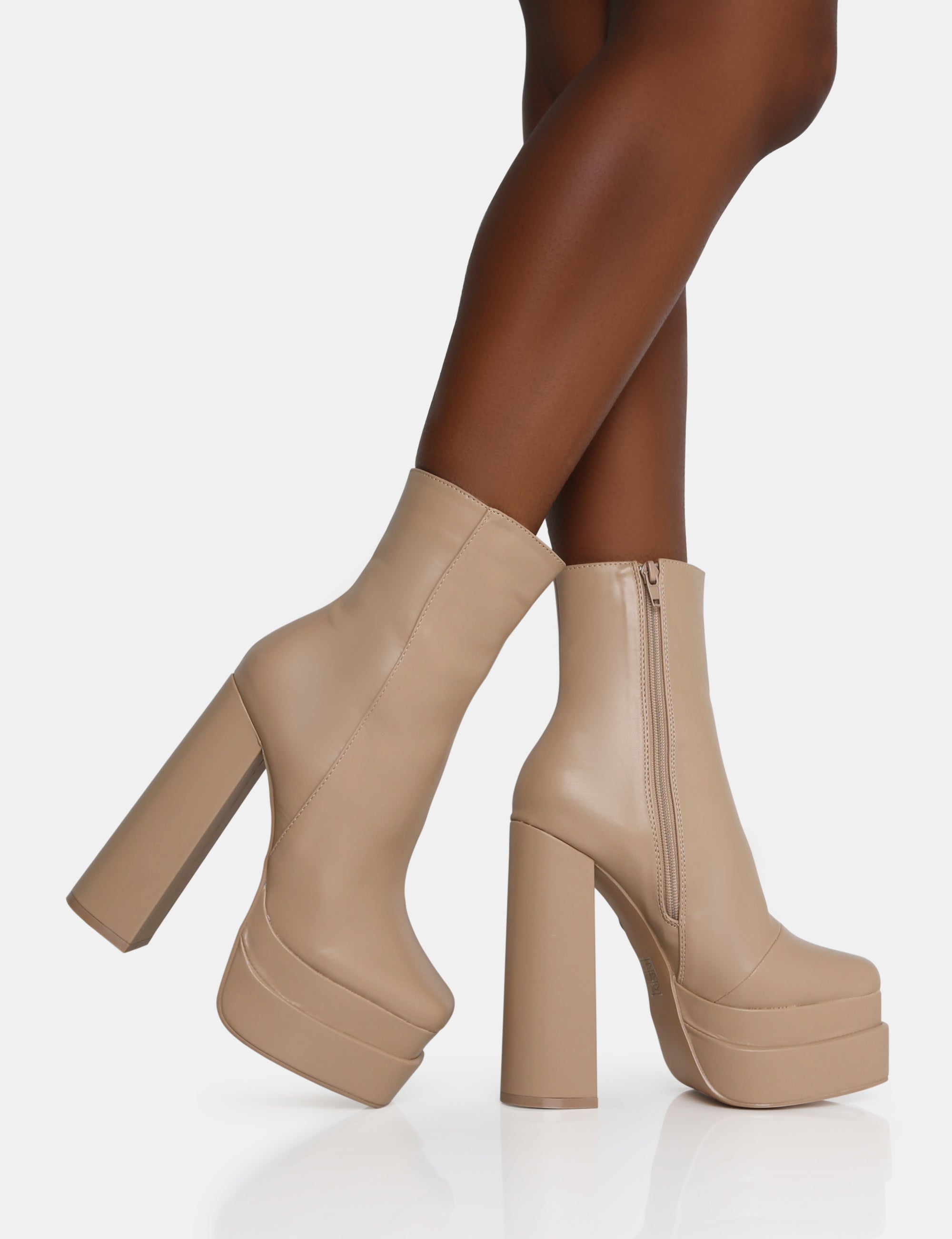 - Supine Nude PU Chunky Heeled Platform Ankle Boots
