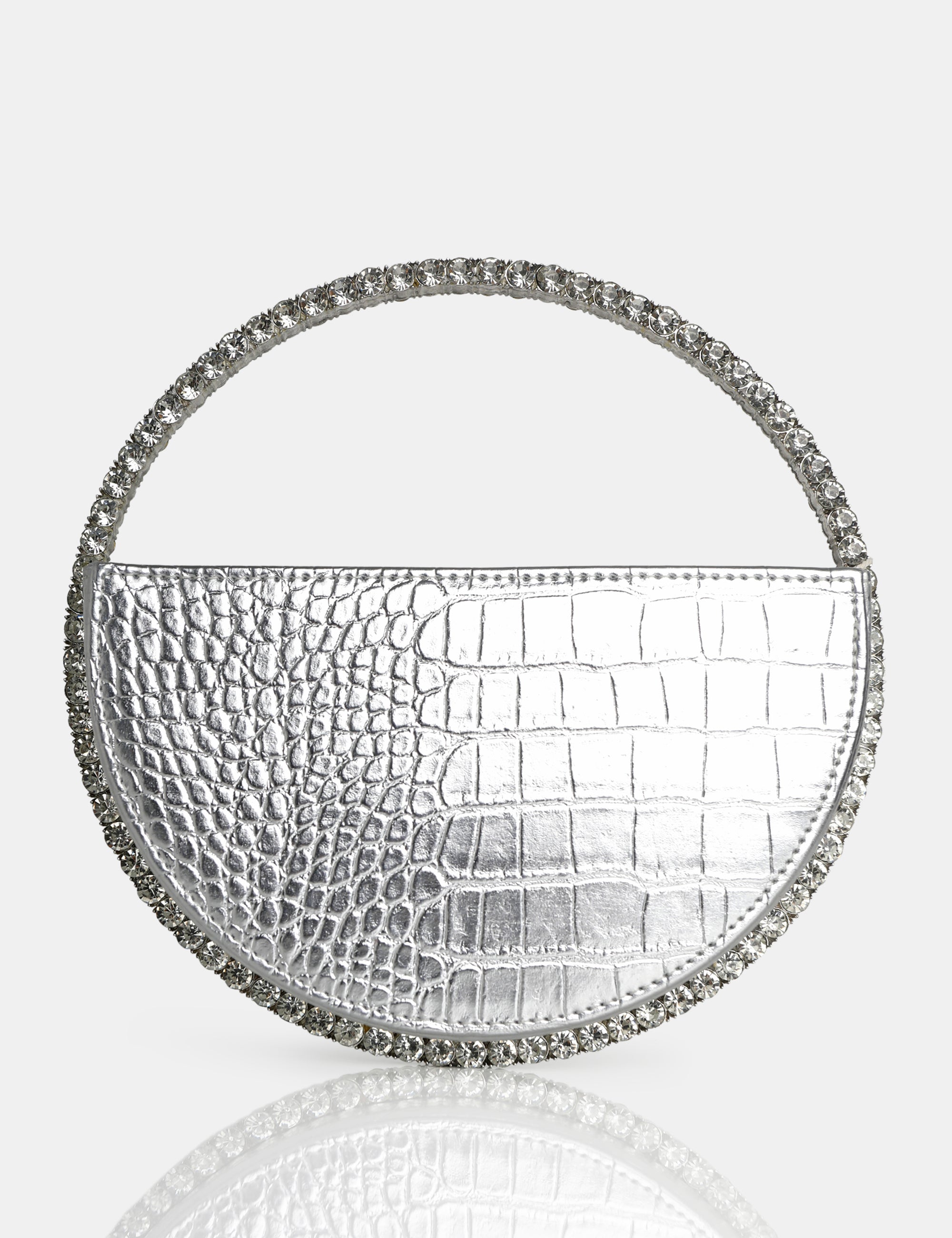 - The Alessia Silver Croc Pu Circle Diamante Grab Bag