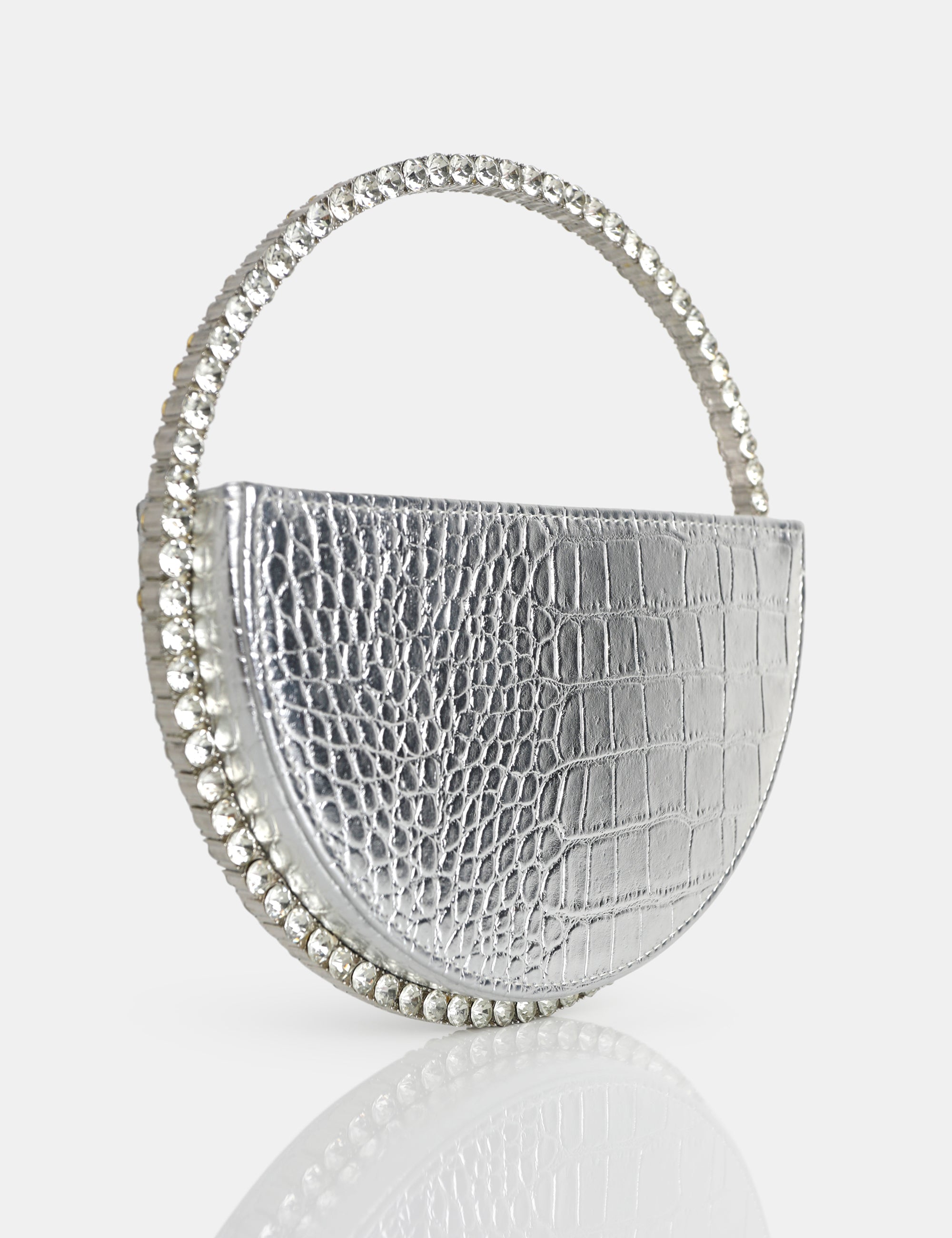 The Alessia Silver Croc Pu Circle Diamante Grab Bag