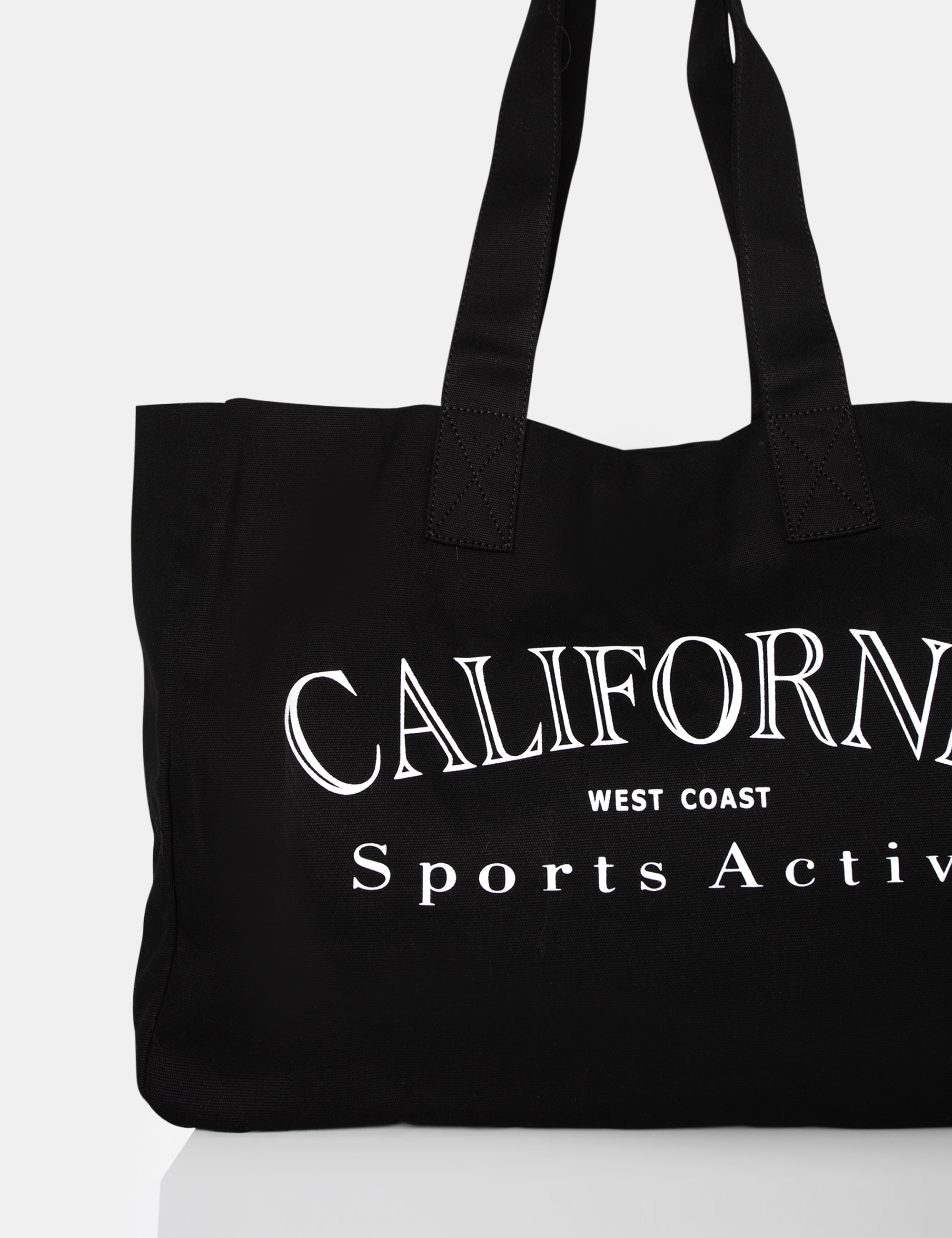 Put your things in the California Oversized Black Canvas Tote to strut your stuff around town! It's roomy enough for all your everyday carry-alls - just sling it over your shoulder and show it off. Plus, the fun graphic text gives it an extra stylish flair. This is one large tote that won't just lie around - it's a bag ready to keep up with all your on-the-go activity!
