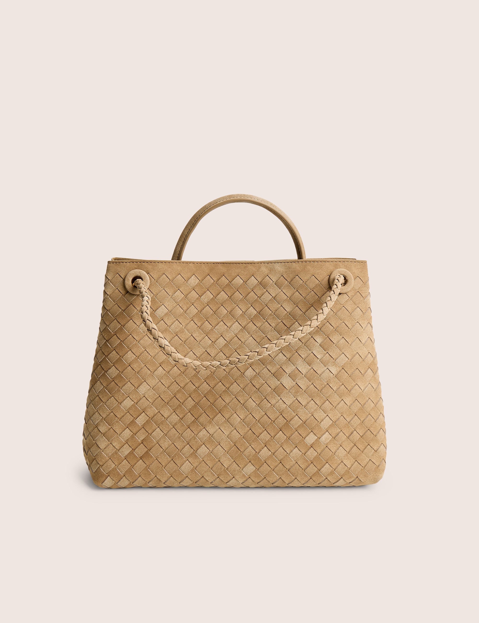 - The Daria Beige Suedette Weave Medium Tote Bag