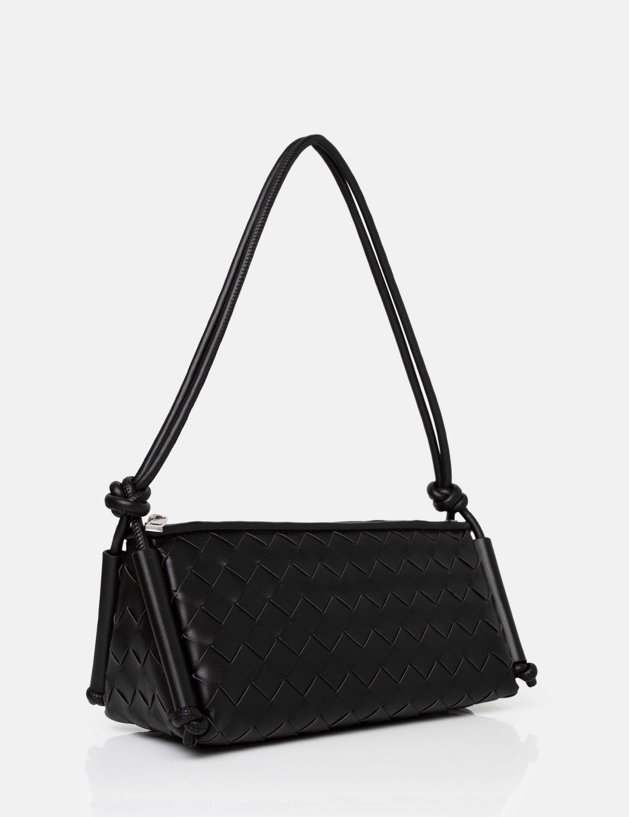 Ready to slay? Say hello to Tate. The simple shoulder bag you need in you wardrobe. The Tate Black Woven Oblong Knotted Handle Shoulder Bag is on our most wanted list!