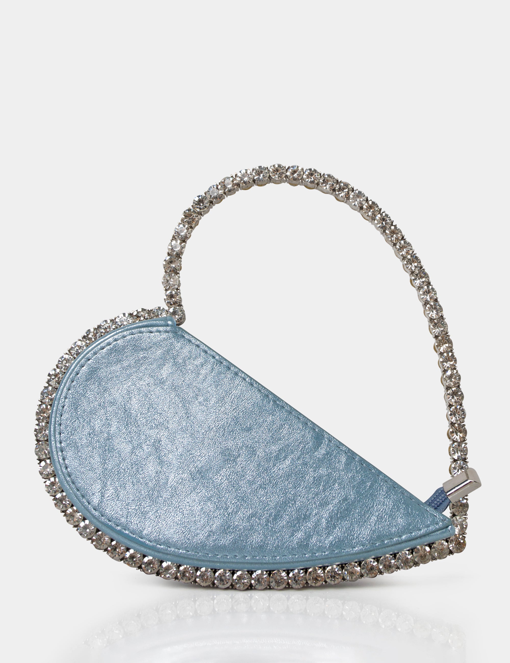 The Zee Ice Blue Metallic Diamante Love Heart Grab Bag