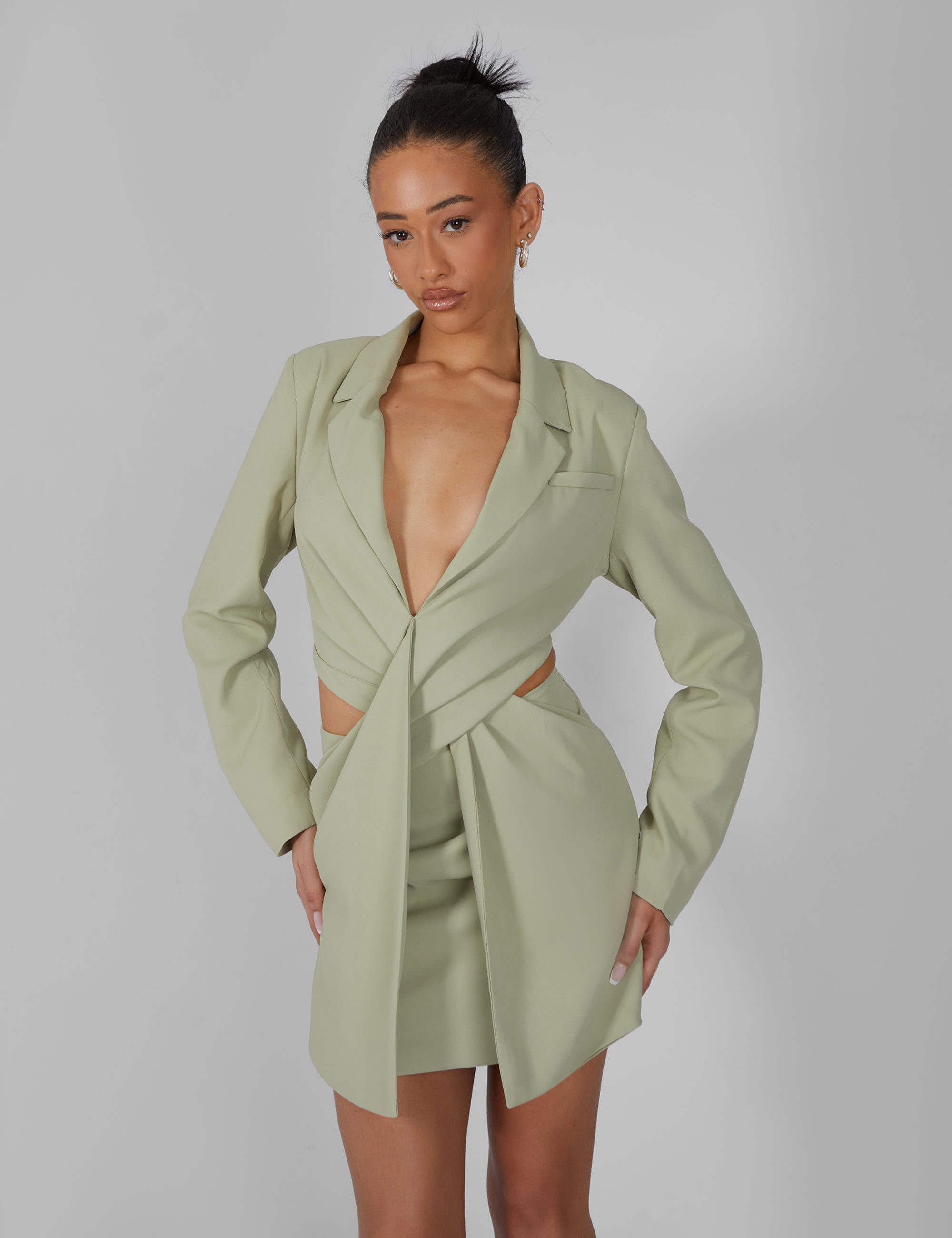 Introducing the "Twist Front Blazer Dress Sage" - a sleek and sophisticated addition to your wardrobe that exudes effortless style. With its stunning sage green color and flattering twist front design, this blazer dress is the perfect combination of simple and sexy. Whether you're headed to a night out or a date, the Twist Front Blazer Dress Sage will make you look and feel confident and fashionable.