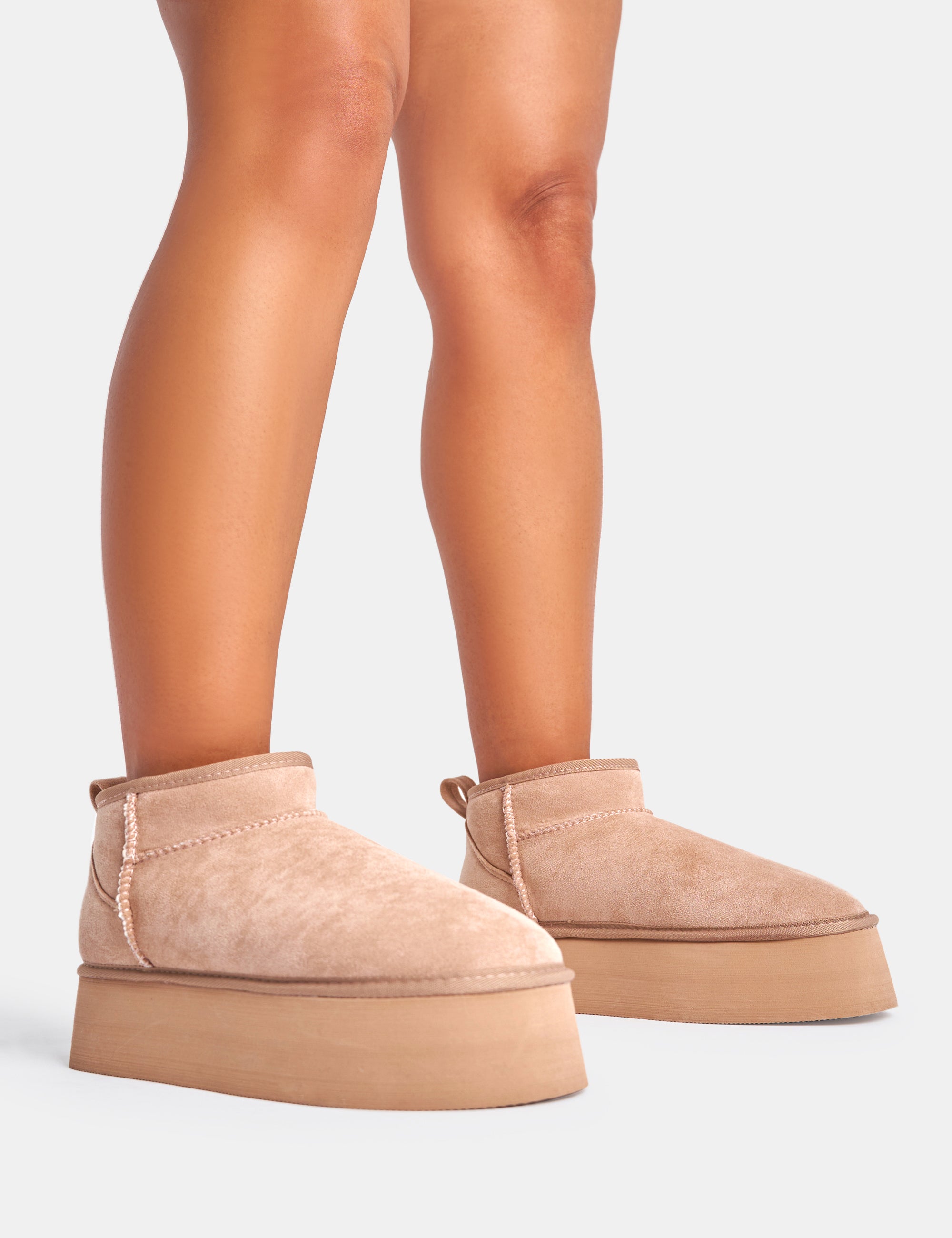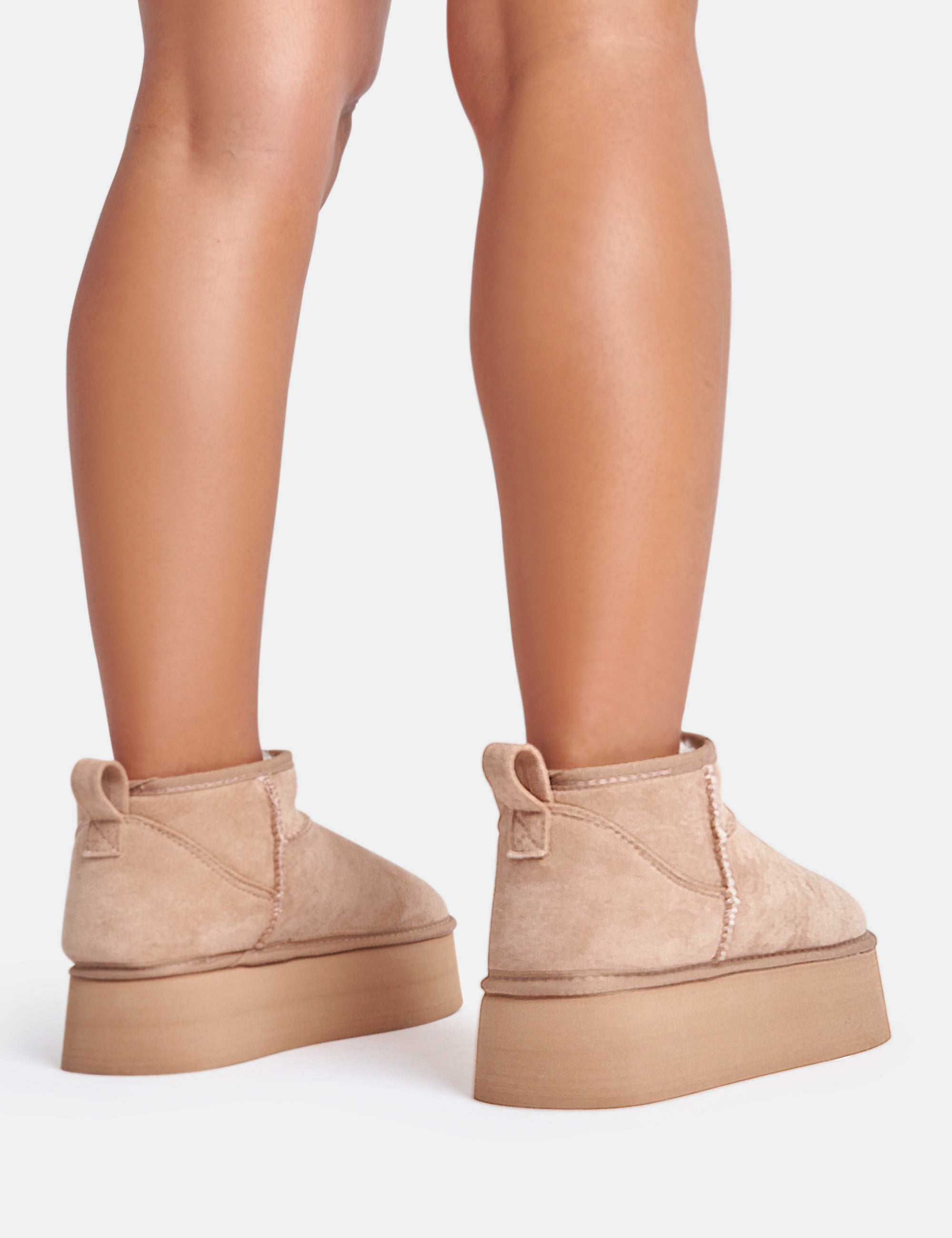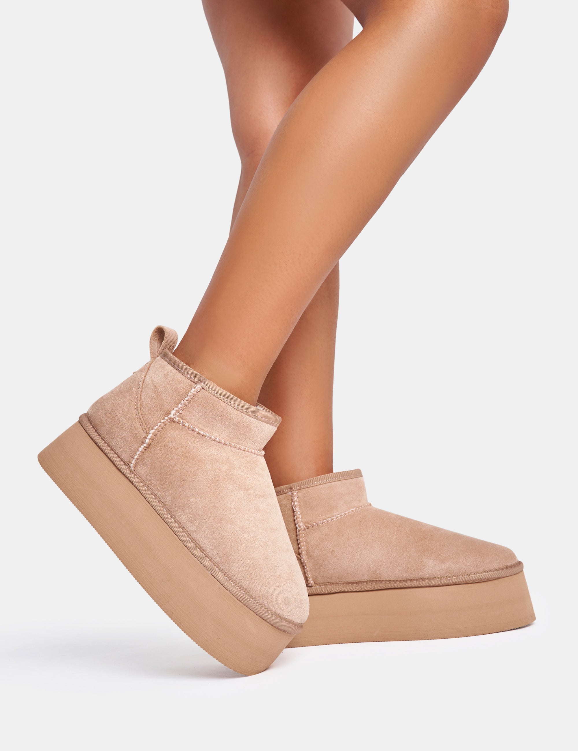 - Willow Light Beige Faux Suede Ultra Mini Ankle Triple Platform Boots