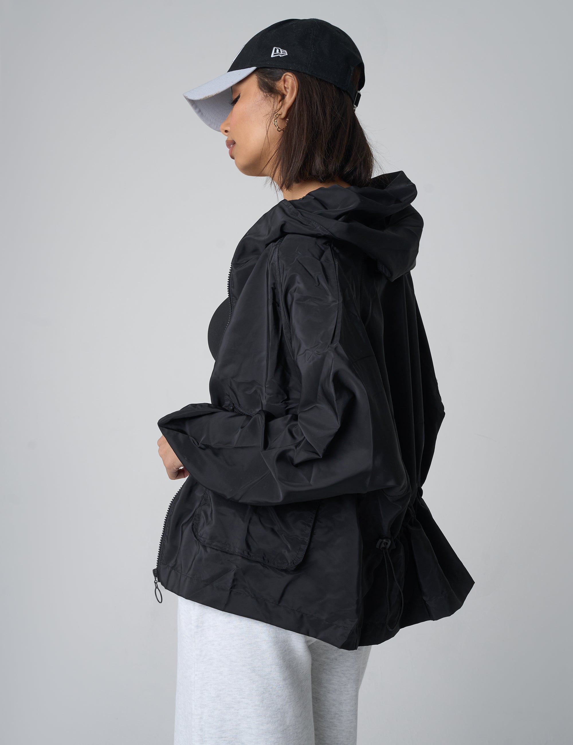 Tie Waist Detail Windbreaker Black